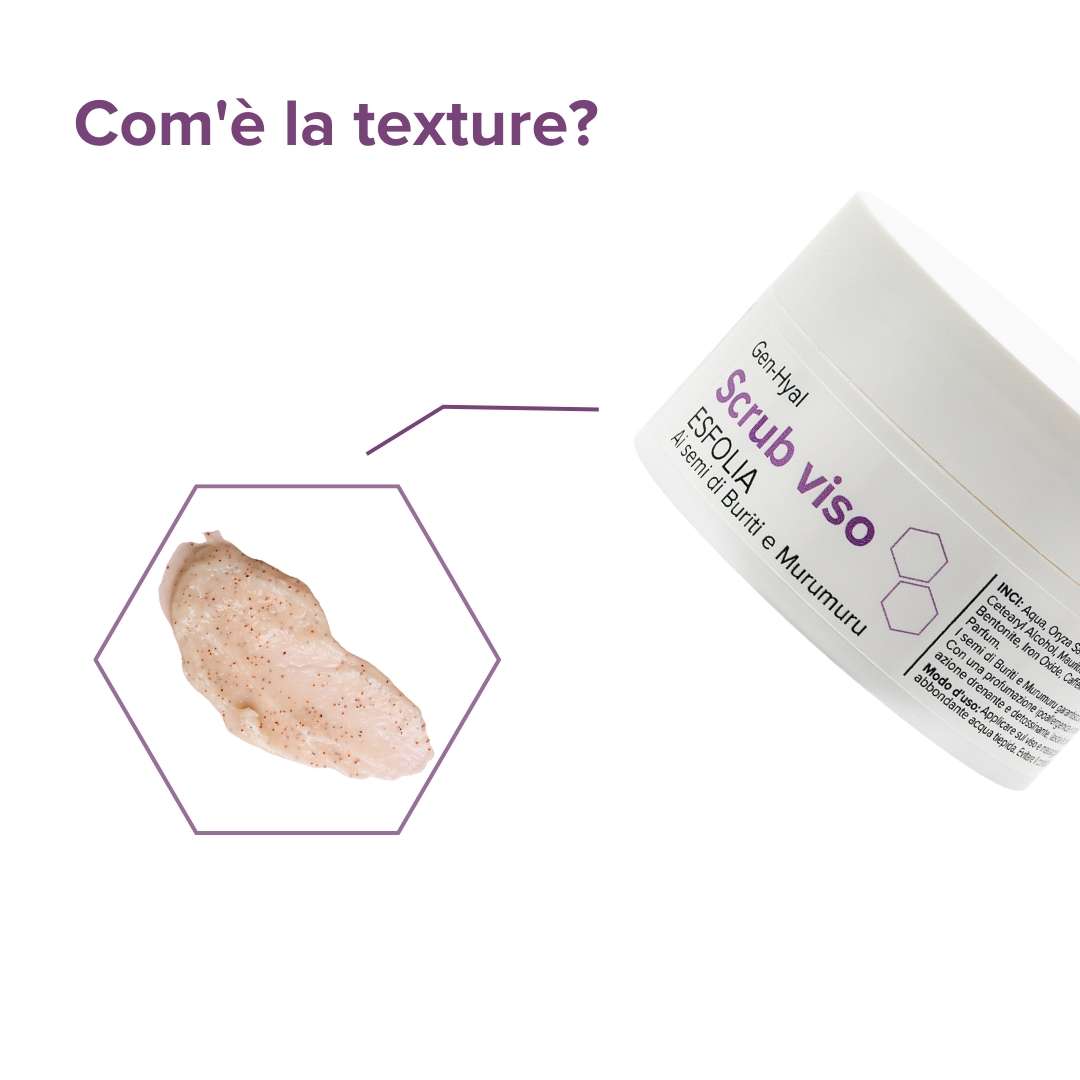 Lo scrub viso ai semi di Buriti e Murumuru ha un’azione esfoliante delicata ma efficace, con una piacevole profumazione ipoallergenica e non aggressiva.